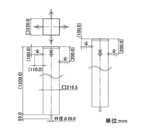 ●呼び20で給水して、四方向の水栓を同時に使用することが出来ます。